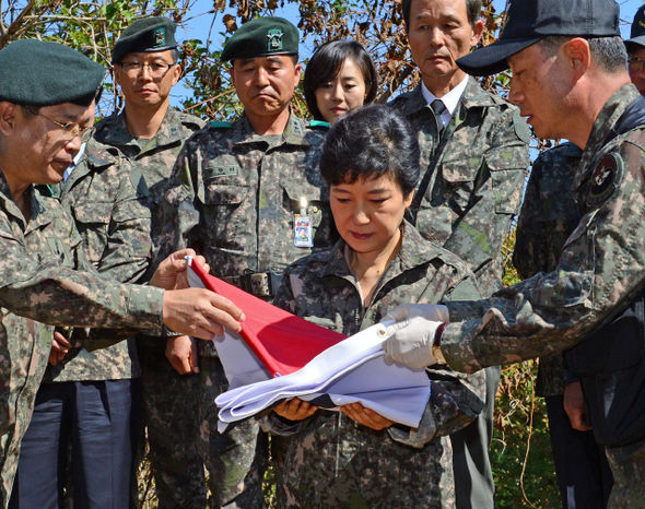 韓国のテレビでは、朴槿恵(パク・クネ、Park Geun-Hye)大統領が軍服を着てソウル(Seoul)郊外で軍指揮官らに指示を与える様子が放映された。